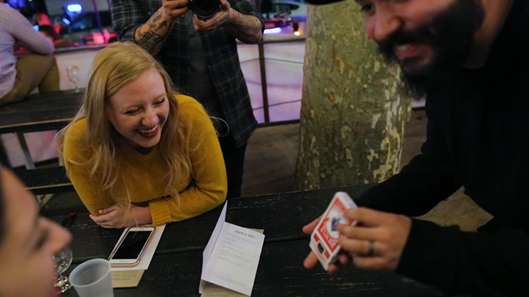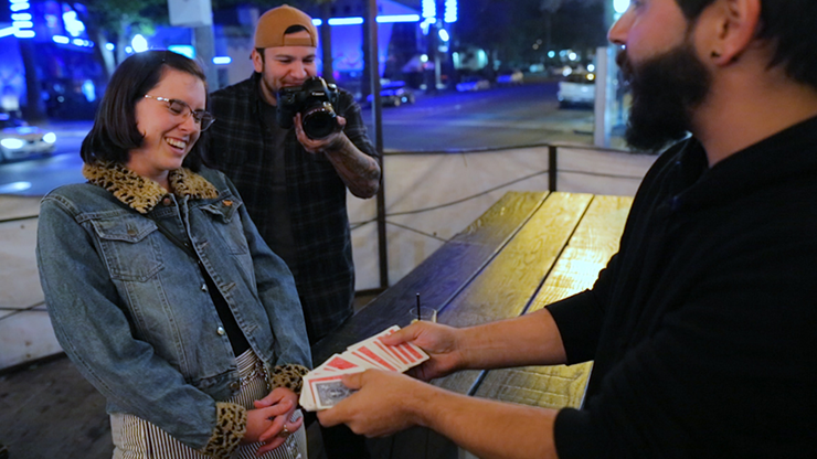 The box is opened, and a RED deck is slid halfway out. With just a wave, the ENTIRE BOX VISUALLY changes color to RED.
