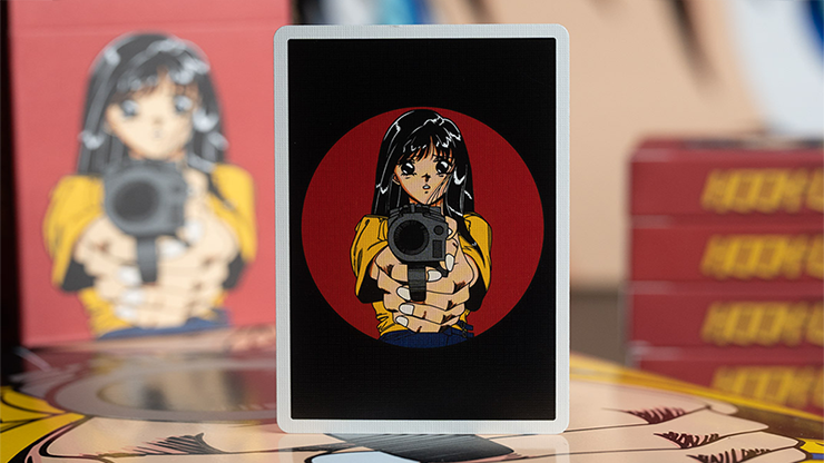Barrel of a Gun is one of the most iconic graphics from the vast catalog of Hookups and this deck features completely custom court cards. Each court card features graphics from the archives and is packed in a beautiful, embossed tuck box inspired by vintage anime.