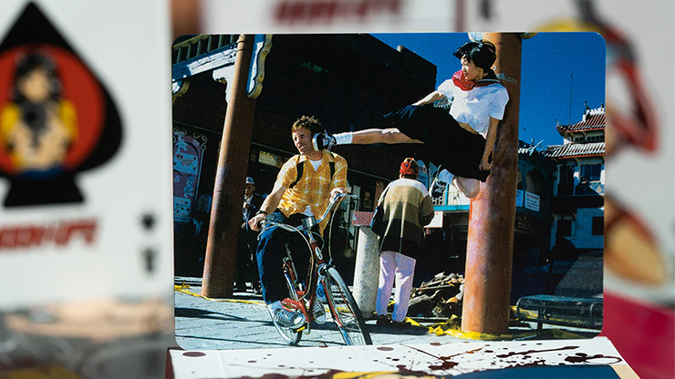 Printed in China on cardistry stock with metallic red hot foil stamping on the card back and the tuck box.
