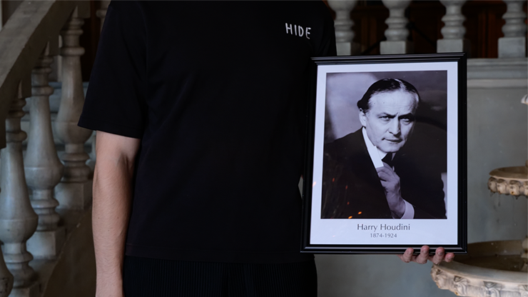 The spectator thinks of a celebrity, and you reveal a portrait of a star in your box, but it's Harry Houdini! Oops, wrong. But in Harry's hands, he holds a photograph of a child, and that child is the celebrity the spectator is thinking of! You wave a cloth and transform the child into Marilyn Monroe.
