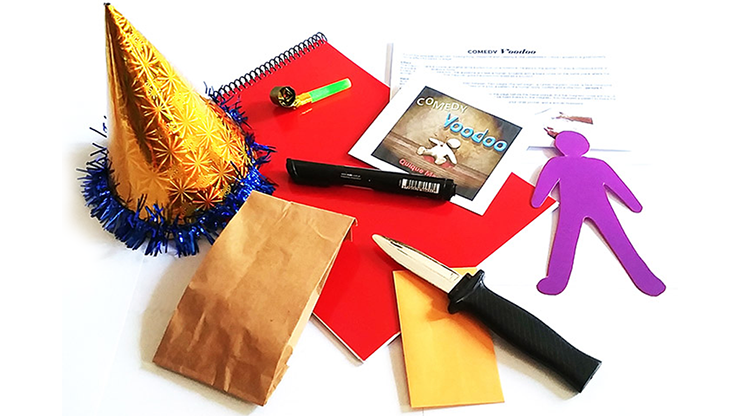 The magician invites a couple on stage, writes a prediction on a notebook, and after much comedy and very funny situations, the wife stabs a fake knife anywhere in her husband's body. The prediction made by the magician earlier matches perfectly!