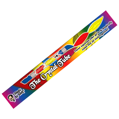 A crystal tube is shown. The magician puts inside the tube, three separate silks. He then blows the silks from the tube where they have magically become tied together.