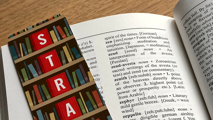 As Coincidence: A spectator takes a bookmark and inserts it into the dictionary. The page at that exact location is removed, torn and pieces mixed. The spectator selects one piece and then chooses how they prefer to think about the information. They never see the end coming: a surprising revelation of a perfect coincidence.