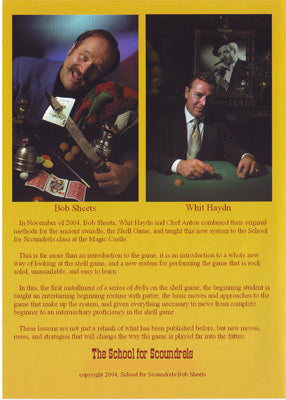 In November of 2004, Bob Sheets, Whit Haydn, and Chef Anton combined their original methods for the ancient swindle, the Shell Game, and taught this new system to the School for Scoundrels class at The Magic Castle.