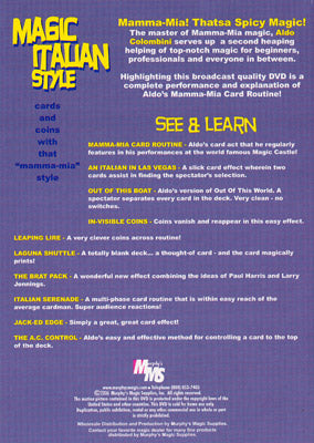 Highlighting this broadcast quality DVD is a complete performance and explanation of Aldo's Mamma-Mia Card routine!