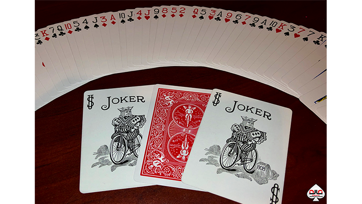 The Jokers are given to a spectator to hold, then a card is selected. This chosen card is now shuffled and lost in the deck. The cards are spread face down and the spectator inserts the face up Jokers around any card, sandwiching and isolating it from the rest. This mystery card is now turned over and incredibly it is their selected card! The effect could end here, but in an unexpected finale, the face up Jokers are turned over to reveal a jaw-dropping prediction on their backs!
