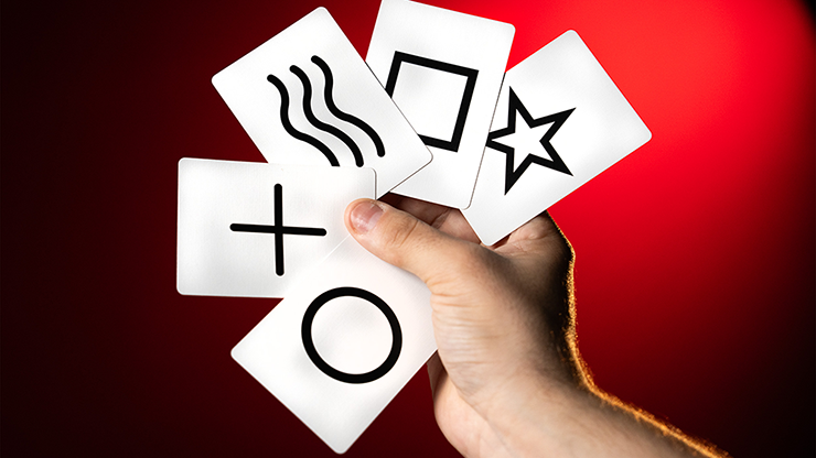 The deck consists of 50 cards depicting the five ESP symbols: Circle, Star, Waves, Square, Cross.