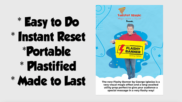 The new Flashy Banner by George Iglesias is a very visual magic effect and a great utility prop perfect to give your audience a special message in a very flashy way!