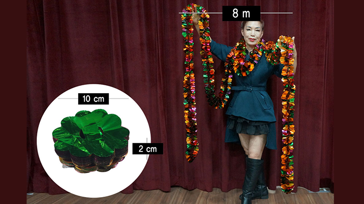 When extended, it expands into a beautiful, colorful shiny 8 meter garland for maximum impact.