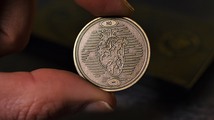 You unveil a sleek and stylish decision-making coin adorned with a Head on one side and a Heart on the other. Your participant flips the coin in the air, catches it and glimpses what it lands on. Despite never seeing the outcome of the toss, you accurately reveal how it landed.