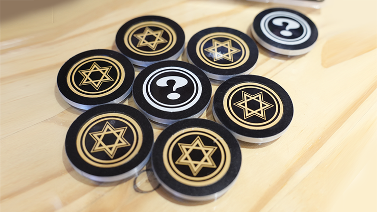 With the rest of the five chips with different colors, magician will take out one more question mark chip to perform this prediction trick again.