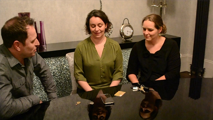 A marvelous prediction effect! You show a key fob with a prediction on it, attached to your keys. This is placed face down on the table. Four objects are borrowed -- a key, a phone, a coin, and a card. The spectator is asked to discard one of the objects -- this is repeated until one remains. You ask the spectator to turn over the key fob to reveal the prediction. Printed on the key fob is the name of the remaining object!