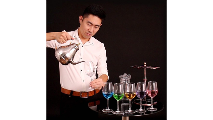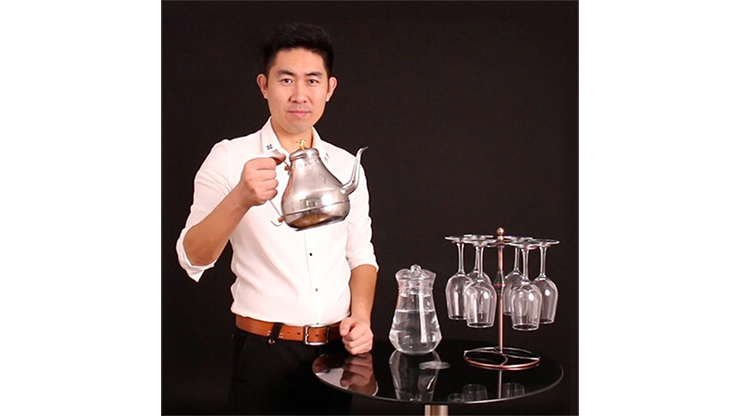 You display a beautiful tea kettle and empty glasses hanging on a beautiful display stand. You ask a random audience member to name any drink. You pick up and empty the glass and pour said drink from the kettle! Next, you ask another person to name another drink, you pick up another empty glass and pour their drink from the same kettle! You can repeat this over and over again, and each time the illusion becomes more baffling!