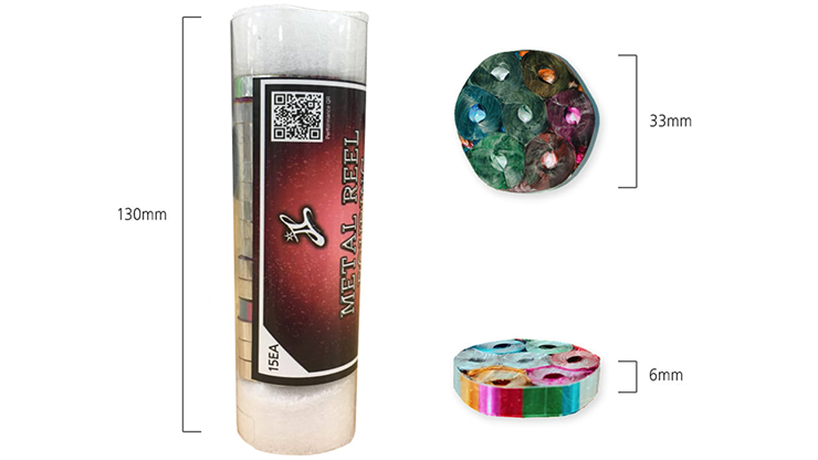 Metal Reel Pouring is a shiny metallic ribbon throw streamer pack that is the perfect addition to your finale.