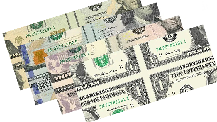 Most skilled magicians know how to borrow a bill and turn it inside out, but if not, DJT teaches a basic bill switch when purchasing his magic mismade money.