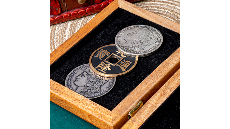 An ancient Chinese coin is carefully examined by the audience. You even use a small stick to pass through the symbolic hole of the ancient coin.