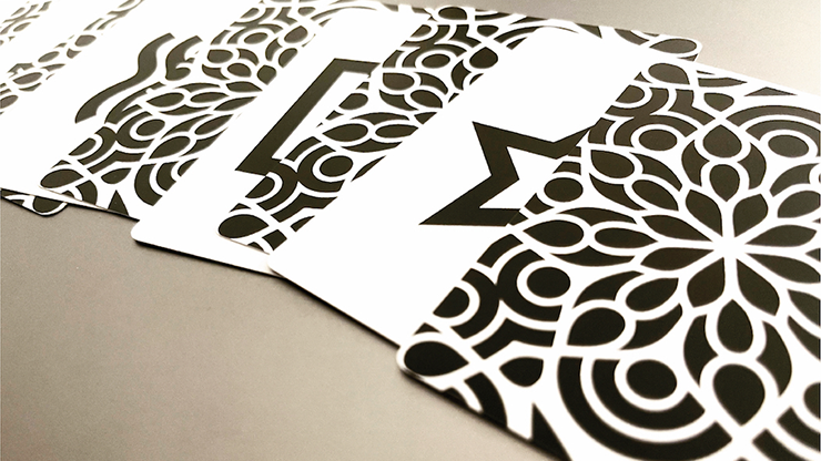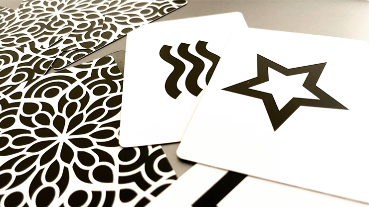 This set of ESP cards is based on his groundbreaking Eleusis Marked Deck back design but uses different markings that are more suited to an ESP set. Because ESP cards in general will typically be placed next to one another during a routine, it was important that these markings were concealed even better than before.