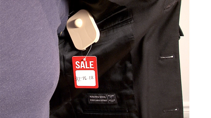 Instantly, you remove your jacket, REVEALING A SECURITY TAG with a price tag hanging from it. (This is a very funny moment!)