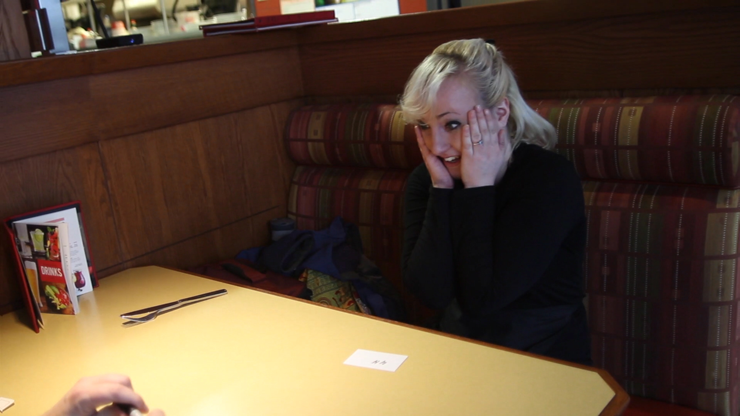 You instantly know what she secretly wrote on a blank business card...while the face-down card is covered by her hand -- or a bunch of hands -- or even a book!