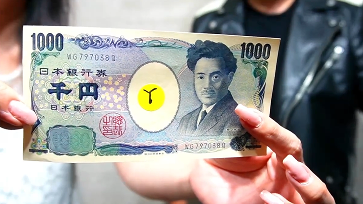 Ask a spectator to put a sticker on the borrowed bill and sign it.