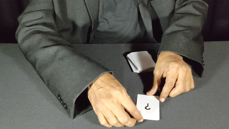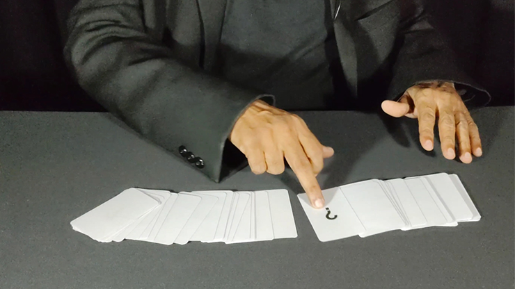 When the deck is turned over and spread on the table, only one card is found with a "?" mark printed on it.